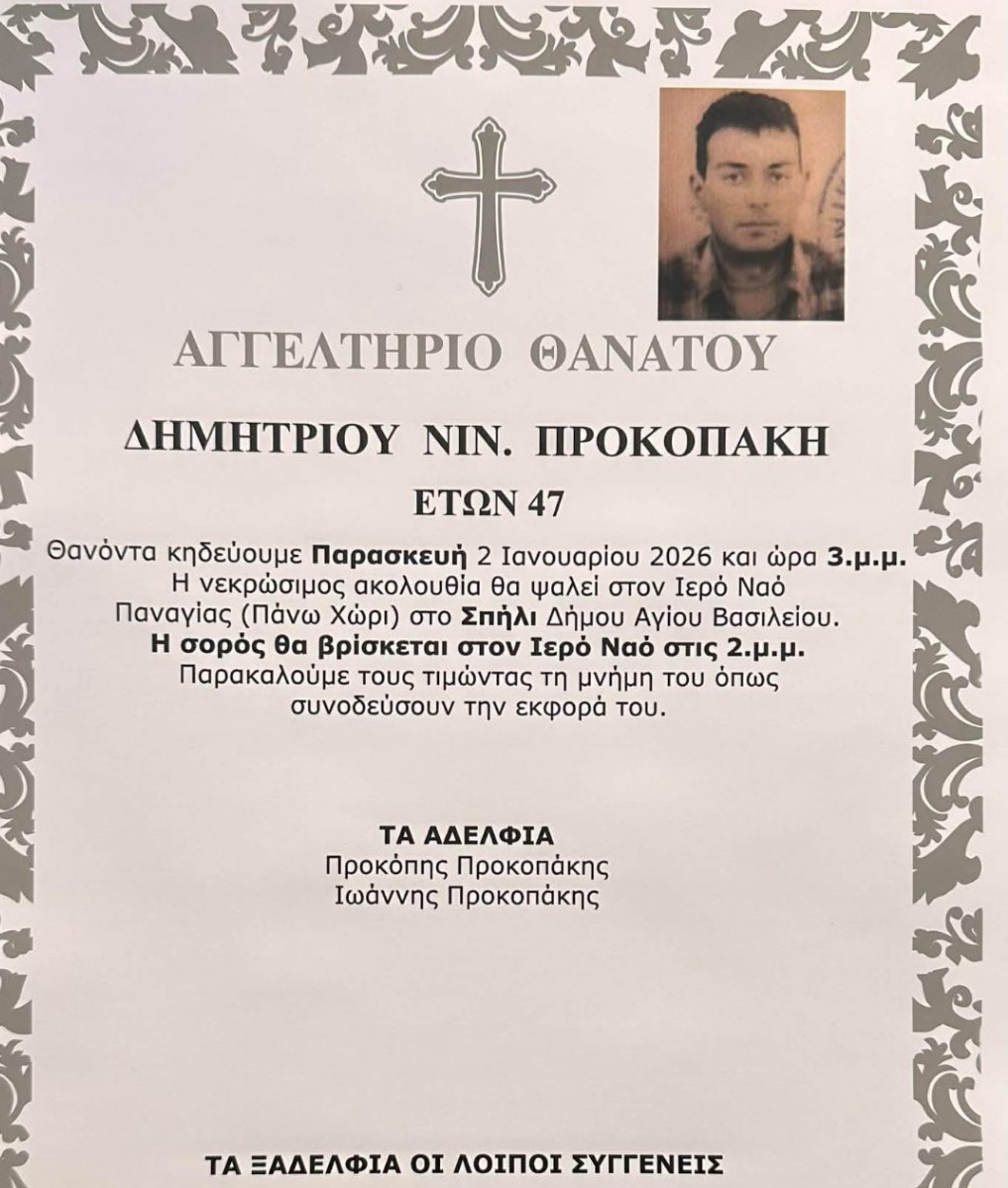 Βαρύ το πένθος στο Ρέθυμνο από την είδηση του πρόωρου θανάτου του αγαπητού Δημήτριου Προκοπάκη που έφυγε από την ζωή σε ηλικία 47 ετών.