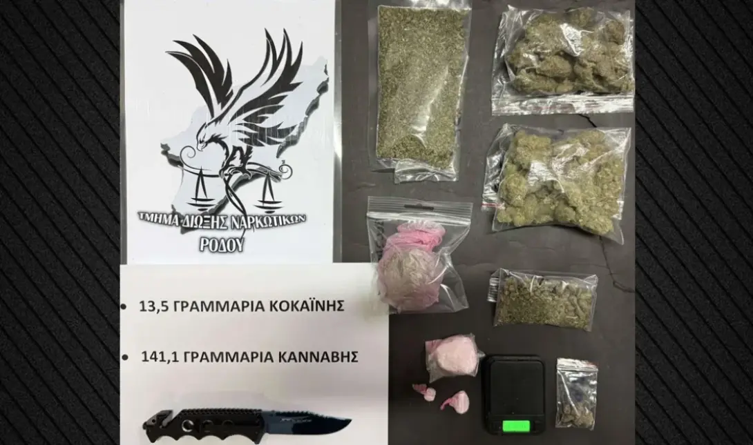 - Η Αστυνομία συνέλαβε έναν 21χρονο και μια 28χρονη αλλοδαπή στη Ρόδο για διακίνηση ναρκωτικών και οπλοκατοχή.