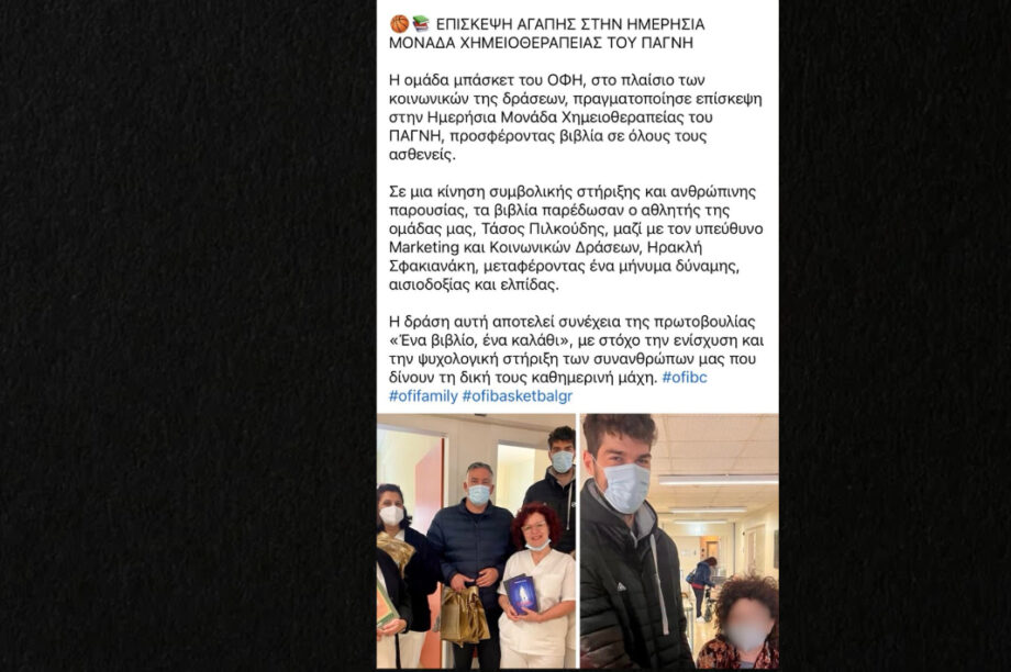 23.03.2026, 11:03 Επίσκεψη αγάπης από την ομάδα μπάσκετ του ΟΦΗ στην Ημερήσια Μονάδα Χημειοθεραπείας του ΠΑΓΝΗ
