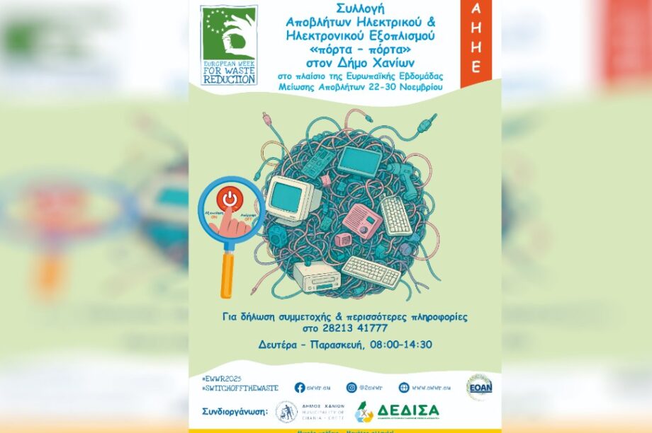 20.11.2025, 12:17 Δήμος Χανίων: Συλλογή Αποβλήτων Ηλεκτρικού και Ηλεκτρονικού Εξοπλισμού «Πόρτα – Πόρτα»