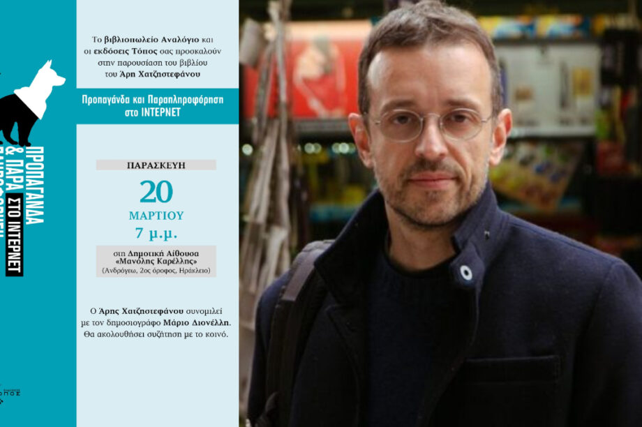 19.03.2026, 15:52 Παρουσίαση νέου βιβλίου του Άρη Χατζηστεφάνου «Προπαγάνδα και Παραπληροφόρηση στο internet» στο Ηράκλειο
