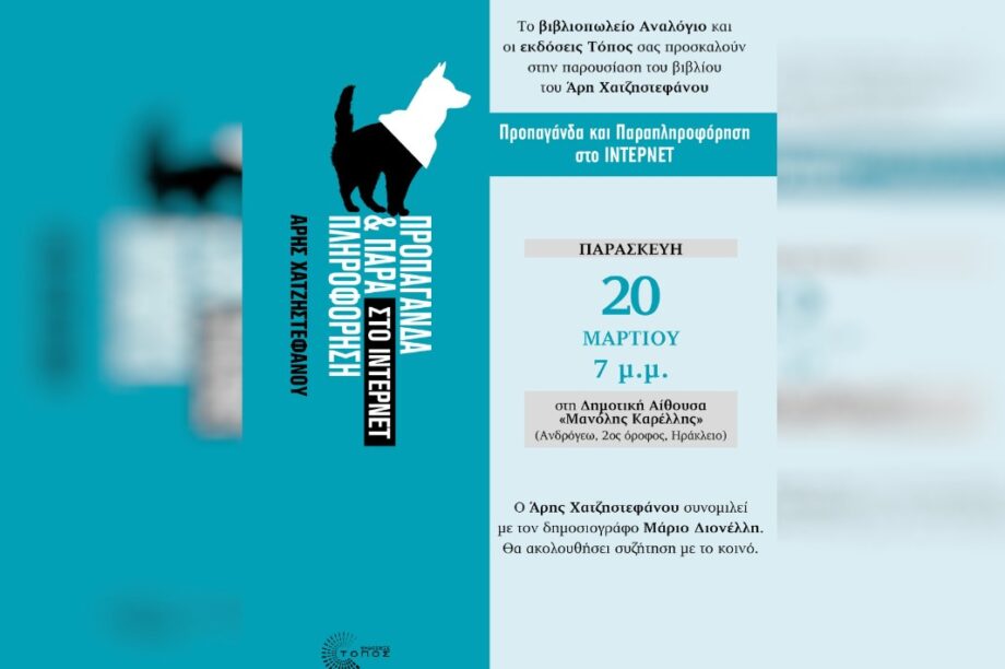 19.03.2026, 10:05 Ηράκλειο: Παρουσιάζεται το βιβλίο του δημοσιογράφου Άρη Χατζηστεφάνου «Προπαγάνδα και Παραπληροφόρηση στο internet»
