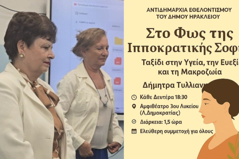 06.11.2025, 11:53 Ηράκλειο: Κέρδισε το κοινό το νέο σεμινάριο για την υγεία, την ευεξία και την μακροζωία της «Δια… Δήμου Μάθησης»