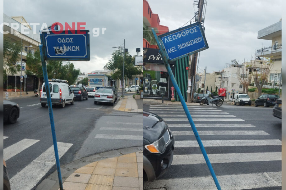 08.01.2026, 10:51 Ηράκλειο: Πινακίδα έτοιμη να καταρρεύσει σε κεντρικό δρόμο της πόλης – Δείτε φωτογραφίες