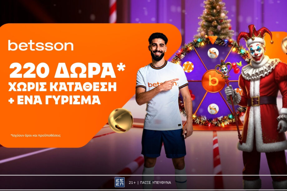 10.12.2025, 15:21 Betsson: Μια ξεχωριστή προσφορά με 220 δώρα* χωρίς κατάθεση + ένα Γύρισμα στον τροχό!