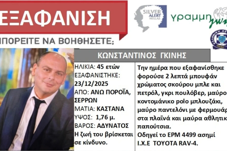 28.12.2025, 21:18 Άκαρπες για πέμπτη μέρα οι έρευνες για τον εντοπισμό του αγνοούμενου διοικητή της Πυροσβεστικής