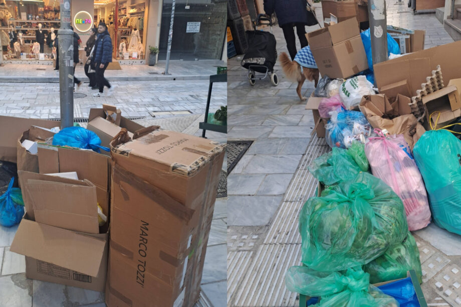 Εικόνα εγκατάλειψης Παραμονή Χριστουγέννων στο κέντρο του Ηρακλείου – Σωροί από σκουπίδια στο δρόμο (Φωτο)
