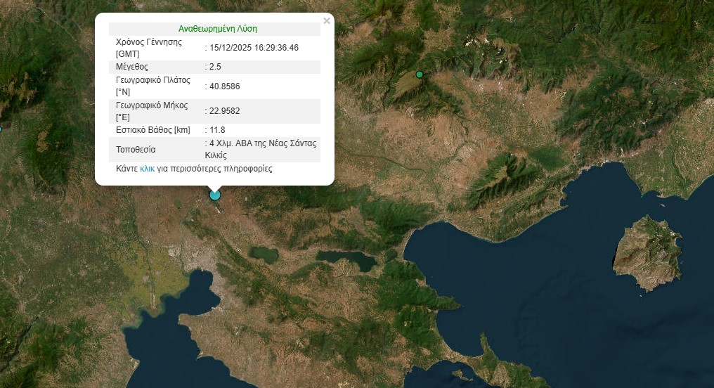 Εξάλλου, λίγα λεπτά αργότερα, στις 6:29 σημειώθηκε ασθενής σεισμική δόνηση, μεγέθους 2,5 βαθμών, με επίκεντρο 4 χιλιόμετρα ανατολικά, βορειοανατολικά της Νέας Σάντας Κιλκίς. Ο σεισμός άν και ήταν επιφανειακός, με βάθος τα 3 χιλιόμετρα και είχε μικρό μέγεθος, έγινε αισθητός και στη Θεσσαλονίκη.