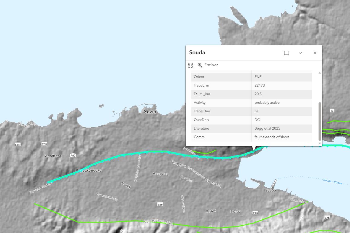 Εντύπωση προκαλεί ότι ένα πιθανά ενεργό ρήγμα βρίσκεται στα Χανιά και κινείται σχεδόν παράλληλα με την οδό Αναγνώστου Γογονή, όπως μπορείτε να δείτε στις εικόνες παρακάτω. Το ρήγμα εκτείνεται ως τη Σούδα και συνεχίζει κάτω από τη θάλασσα.