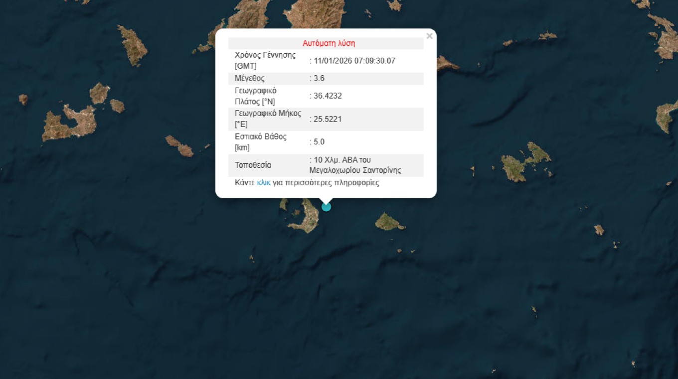- Σεισμός 3,6 Ρίχτερ σημειώθηκε στα ανοιχτά της Σαντορίνης.