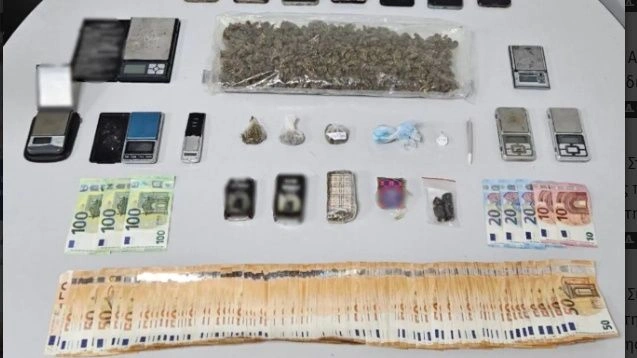 Τα χρήματα τα ναρκωτικά και τα κινητά που βρέθηκαν στην κατοχή του αλλοδαπού συλληφθέντα