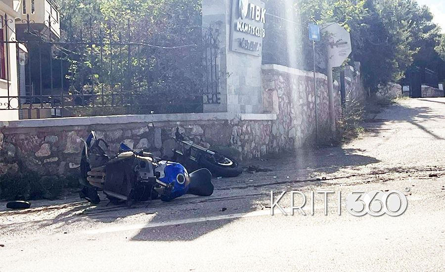 Η μοτοσυκλέτα κυριολεκτικά έσπασε, ενώ ο οδηγός της τραυματίστηκε ελαφρά.