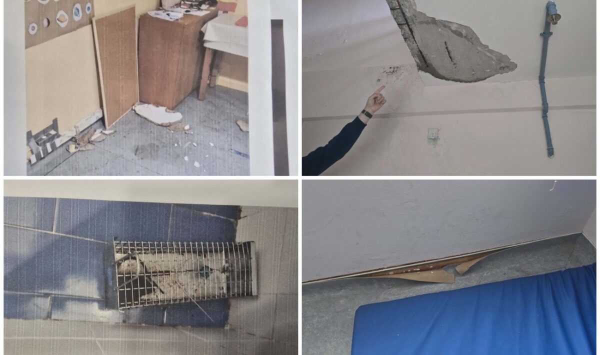 Σοβάδες πέφτουν από τους τοίχους και τα ταβάνια, δεν λειτουργεί η πυρασφάλεια, ενώ όπως καταγγέλλουν οι γονείς στο χώρο υπάρχουν ποντίκια, τα περιττώματα των οποίων είναι διασκορπισμένα παντού.