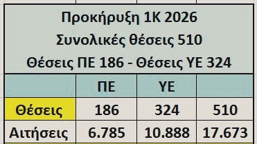 Οι αιτήσεις για λοιπό μονιμο προσωπικό στην προκήρυξη 1Κ/2026 είναι 17.673 για μόλις 510 θέσεις!!!!