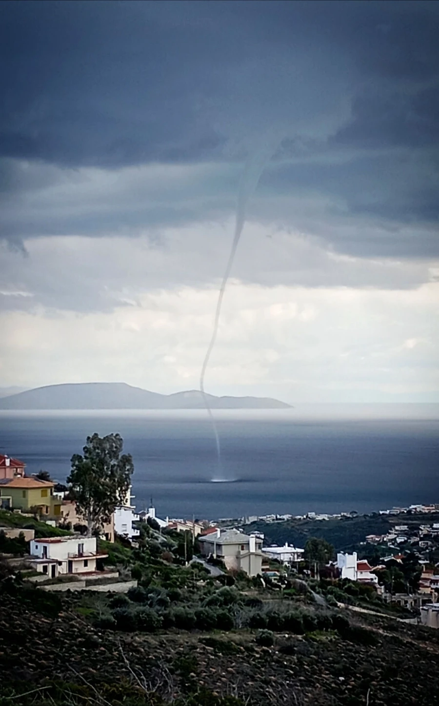 Σε φωτογραφίες και βίντεο που κυκλοφόρησαν στα μέσα κοινωνικής δικτύωσης αποτυπώθηκε το σπάνιο φαινόμενο που έπληξε τα ανατολικά παράλια της Αττικής.