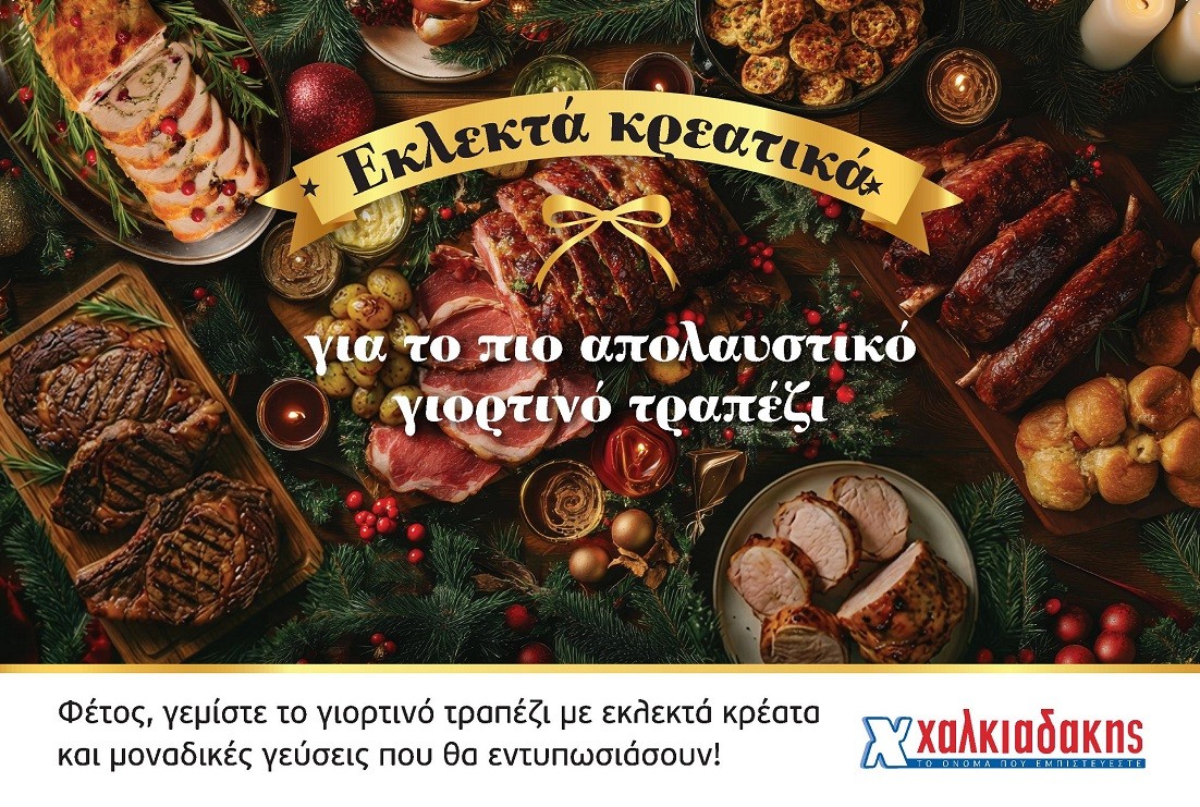 Στα σούπερ μάρκετ Χαλκιαδάκης, οι γιορτές ξεχωρίζουν με γεύσεις που ταξιδεύουν τον ουρανίσκο, αλλά και με προϊόντα που κρατούν γερά τις ρίζες τους στον τόπο μας. Από εκλεκτές gourmet επιλογές από κάθε γωνιά του κόσμου μέχρι αυθεντικές κρητικές προτάσεις, το γιορτινό τραπέζι αποκτά γεύση, χαρακτήρα και φαντασία.