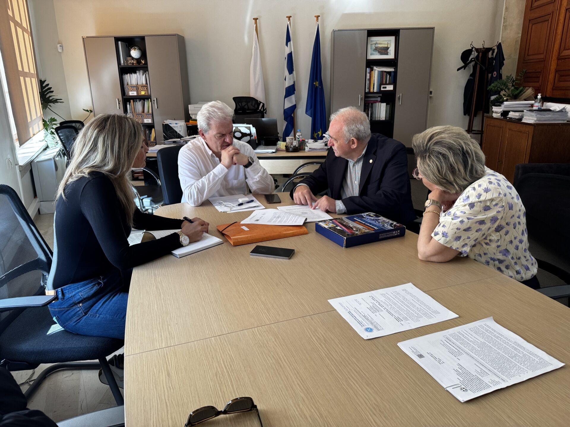 Συνάντηση εργασίας με τον Πρόεδρο του ΟΑΣΠ, καθηγητή Ευθύμη Λέκκα, πραγματοποίησε το πρωί της Παρασκευής 10/10 ο Δήμαρχος Ηρακλείου Αλέξης Καλοκαιρινός, μαζί με την Γενική Γραμματέα του Δήμου Μαρία Σκραφνάκη.