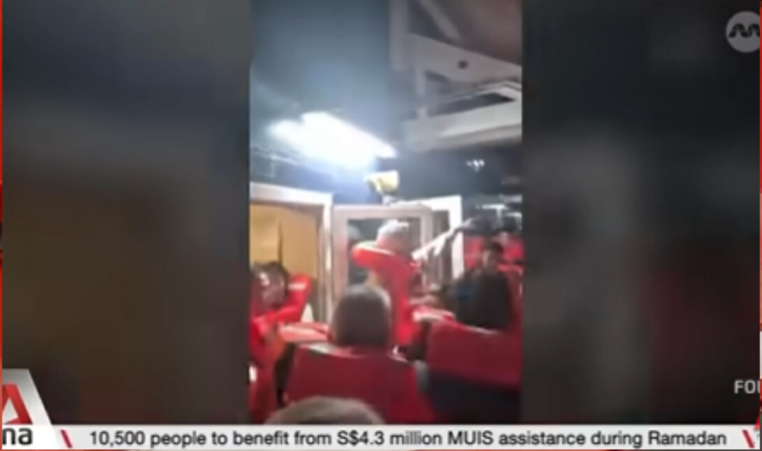 Βίντεο που κυκλοφόρησαν στα μέσα κοινωνικής δικτύωσης δείχνουν δεκάδες επιβάτες να φορούν σωσίβια και να περιμένουν να αποβιβαστούν.
