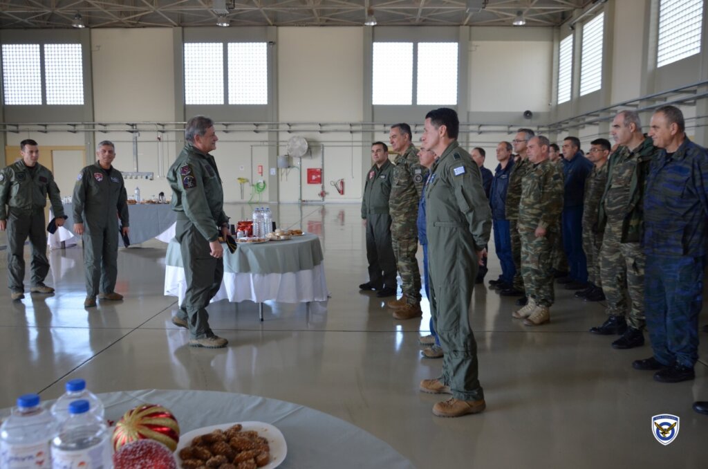 Κατά τη διάρκεια της επίσκεψής του, ο Αρχηγός, συνομίλησε και αντάλλαξε ευχές με το προσωπικό της Μονάδας, καθώς και με τους Ιπταμένους και Τεχνικούς των αεροσκαφών επιφυλακής.