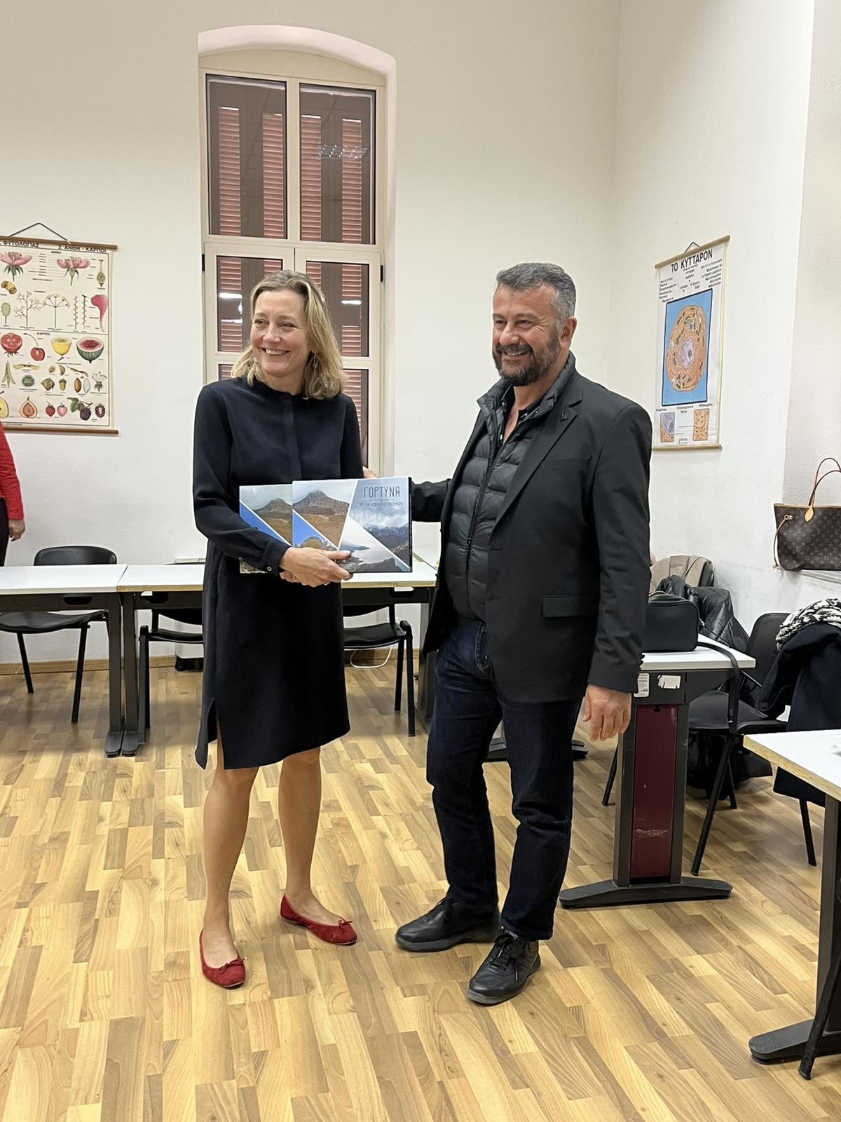Την Πρέσβη υποδέχθηκαν, μεταξύ άλλων, η Διευθύντρια της ΣΑΕΚ Ηρακλείου – Γεωργικής Σχολής Μεσαράς, Στέλα Χατζηγεωργίου, ο Δήμαρχος Γόρτυνας και πρόεδρος του ΔΣ της ΑΜΚΕ Κέντρο Καινοτομίας και Έρευνας – Γεωργική Σχολή Μεσαράς, Μιχάλης Κοκολάκης, ο Δήμαρχος Φαιστού και αντιπρόεδρος της ΑΜΚΕ, Γρηγόρης Νικολιδάκης, ο Α΄ αντιπρόεδρος του ΕΛΓΟ – Δήμητρα και γραμματέας της ΑΜΚΕ, Νεκτάριος Βιδάκης, ο Β΄ αντιπρόεδρος του ΕΛΓΟ – Δήμητρα, Παναγιώτης Χατζηνικολάου, ο αντιδήμαρχος του Δήμου Φαιστού και μέλος του ΔΣ της ΑΜΚΕ, Γιώργος Ντισπυράκης και η Γενική Γραμματέας του Δήμου Γόρτυνας, Κέλυ Γαρεφαλάκη.