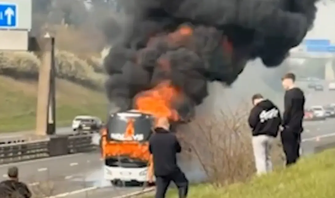 Στιγμές τρόμου έζησαν το μεσημέρι της Κυριακής δεκάδες φίλαθλοι της Μάντσεστερ Σίτι, οι οποίοι ταξίδευαν με λεωφορείο προς το Γουέμπλεϊ, προκειμένου να παρακολουθήσουν από κοντά τον τελικό αγώνα της ομάδας τους κόντρα στην Άρσεναλ, για το League Cup.