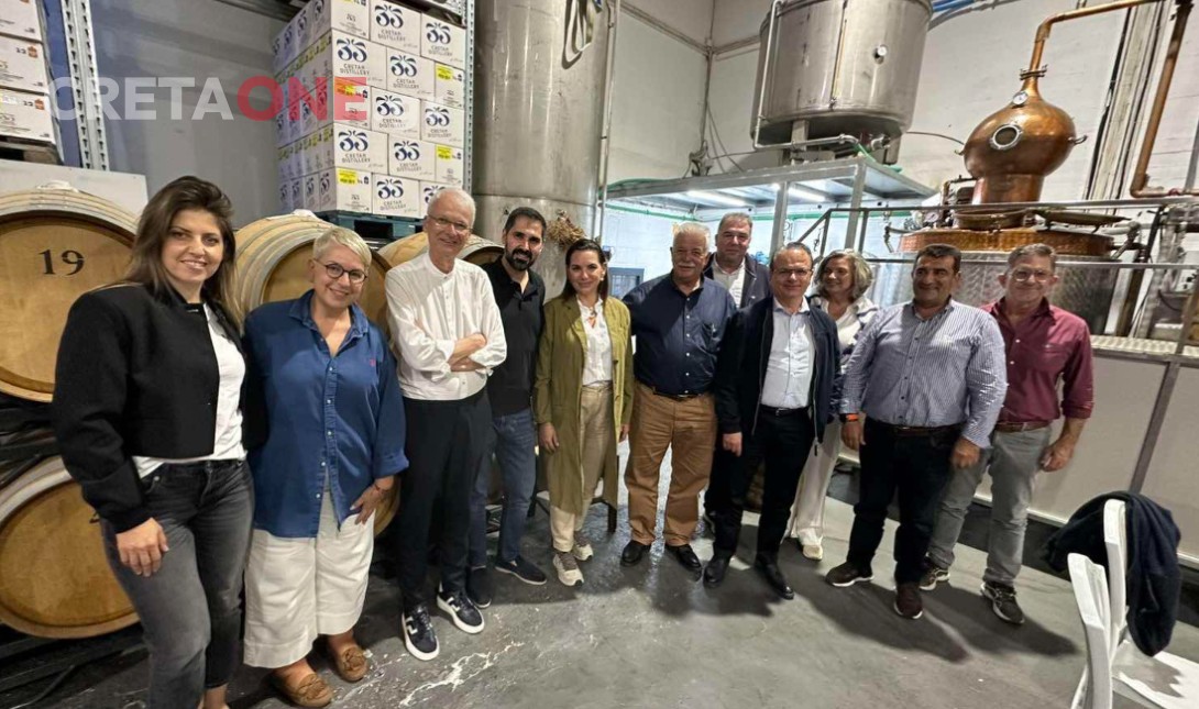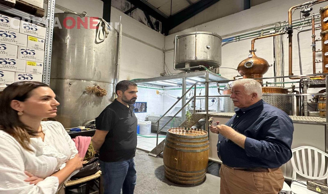 Ο κ. Μιχαλάκης ξεναγήθηκε στις εγκαταστάσεις του αποστακτηρίου από τον Ηλία Μελισουργό, μέλη της οικογένειας του και τον Παντελή Φανουργάκη, σχολιάζοντας τη σημασία της σύνδεσης του πρωτογενούς τομέα με την τουριστική και επιχειρηματική ανάπτυξη της Κρήτης.