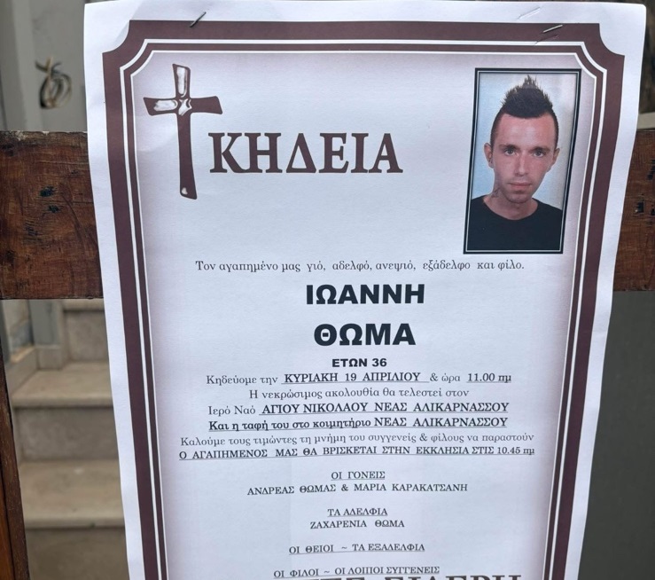 - Η Νέα Αλικαρνασσός θρηνεί για τον αδόκητο θάνατο του 36χρονου Γιάννη Θωμά.