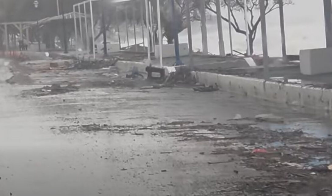 - Ο παραλιακός δρόμος έχει καλυφθεί με φερτά υλικά και το οδόστρωμα επηρεάζεται από τα κύματα.
