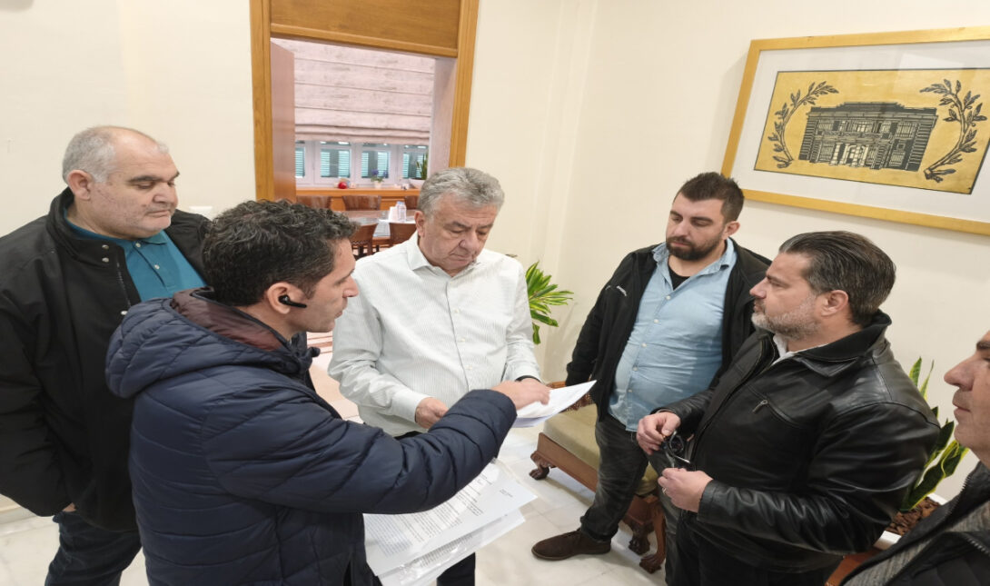 - Οι συνδικαλιστικοί εκπρόσωποι των ταξί Ηρακλείου επέδωσαν ψήφισμα-υπόμνημα στον Περιφερειάρχη Κρήτης Σταύρο Αρναουτάκη.