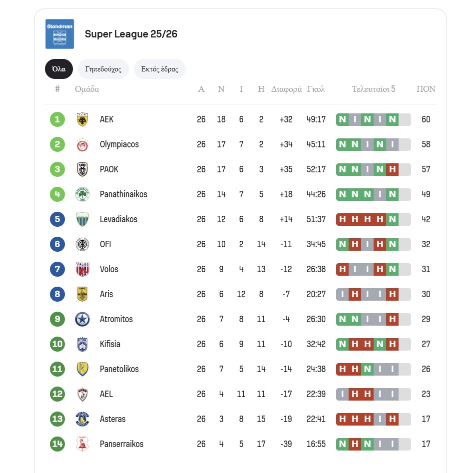 Πως έχει διαμορφωθεί η κατάσταση στη λήξη της κανονικής περιόδου της Super League