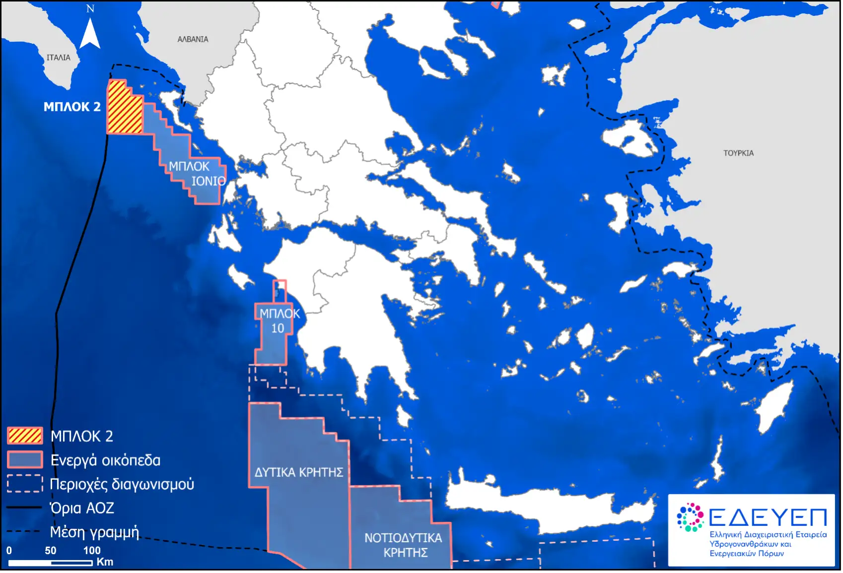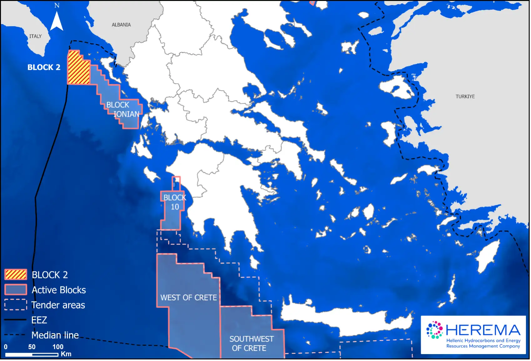 Το Block 2 αποτελεί την πιο ώριμη παραχώρηση στην Ελλάδα ως προς την ετοιμότητα για ερευνητική γεώτρηση. Η σχετική απόφαση για τη διεξαγωγή γεώτρησης θα ληφθεί από την κοινοπραξία στο προσεχές διάστημα.