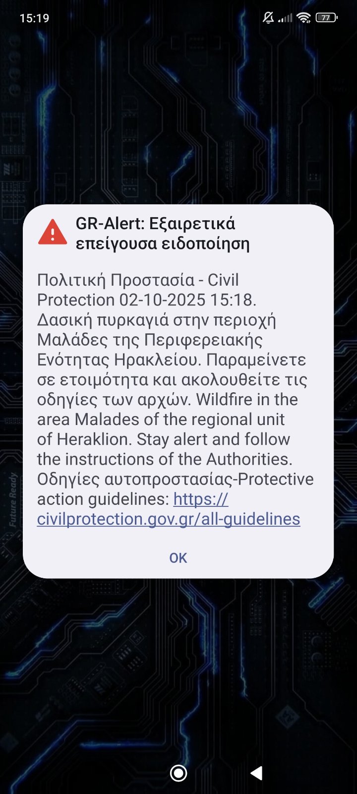 Μάλιστα, πριν από λίγο ήχησε και το 112, με την Πολιτική Προστασία να ενημερώνει για τη δασική πυρκαγιά στην περιοχή και να συνιστά στους πολίτες να παραμείνουν σε ετοιμότητα και να ακολουθούν τις οδηγίες των αρχών.