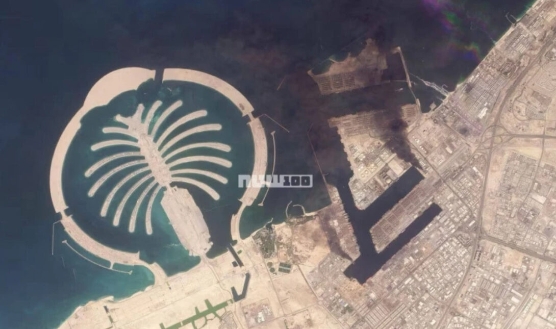 Δορυφορικές εικόνες αποκάλυψαν πυκνό μαύρο καπνό να υψώνεται από το λιμάνι Τζεμπέλ Άλι στο Ντουμπάι των Ηνωμένων Αραβικών Εμιράτων, μετά από αντίποινα του Ιράν σε όλη τη Μέση Ανατολή.