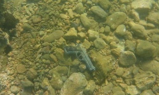 - Η Λιμενική Αρχή ενημερώθηκε και στελέχη ανέσυραν το όπλο από το βυθό.