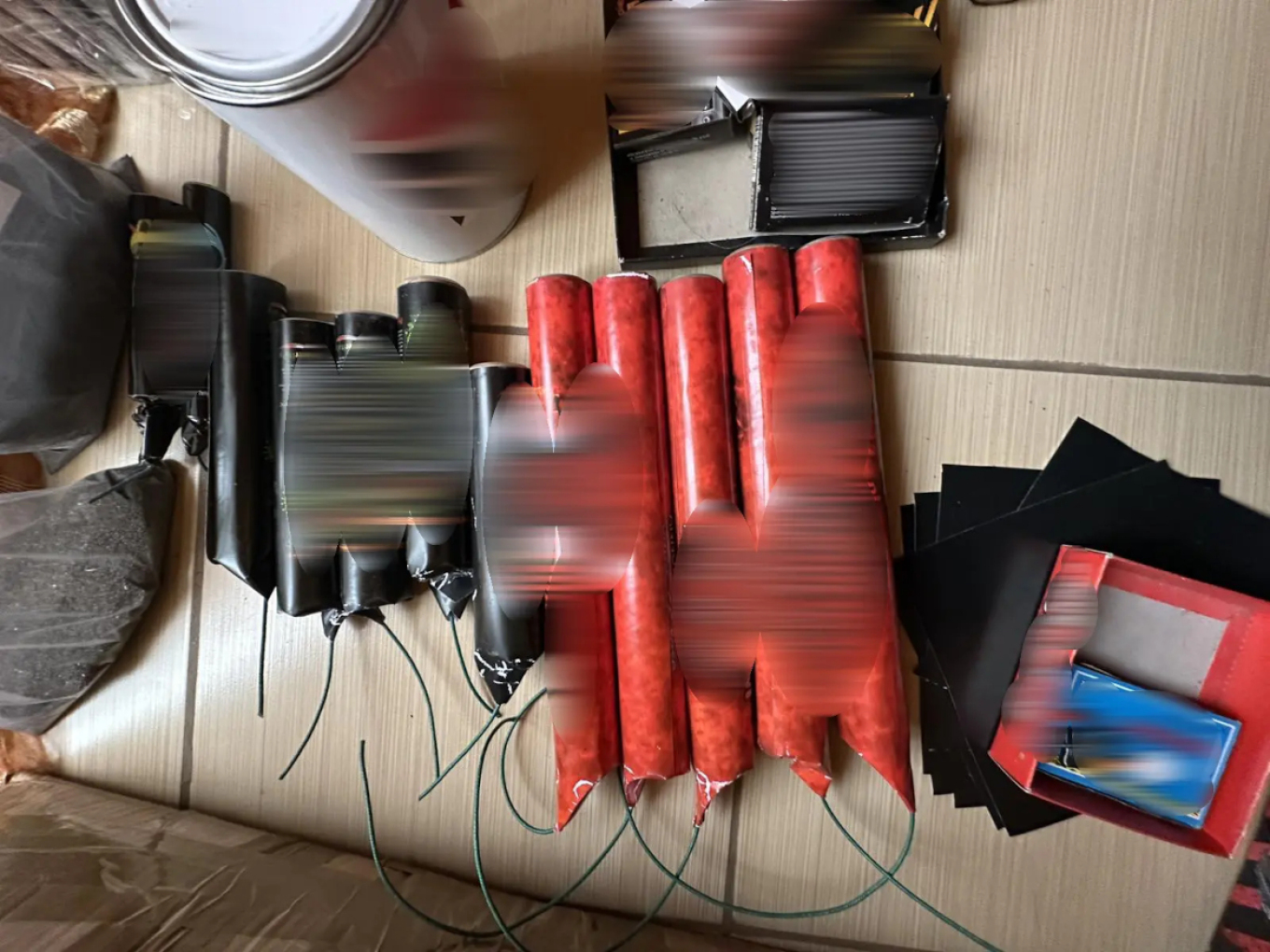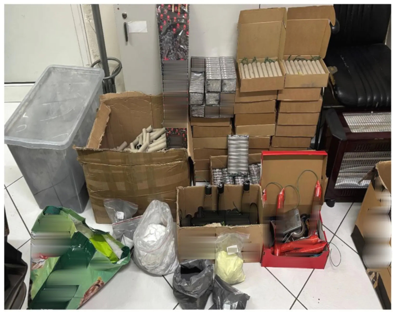 Ακολούθησε έρευνα στην οικία και σε παρακείμενη αποθήκη, όπου εντοπίστηκε επιπλέον εξοπλισμός και υλικά που σχετίζονται με την κατασκευή εκρηκτικών.