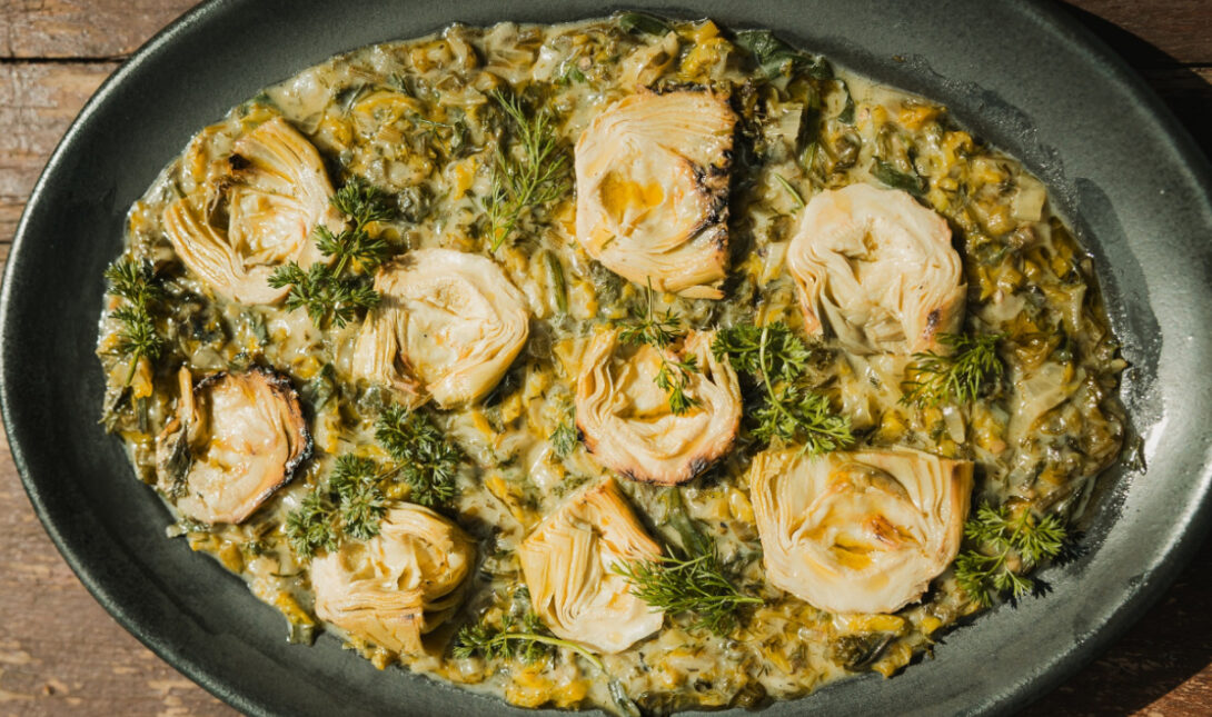 Το αγαπημένο λαχανικό της άνοιξης, οι αγκινάρες μπαίνουν στο τραπέζι μας μαγειρεμένες φρικασέ και μας δίνουν ένα εξαιρετικό πιάτο.