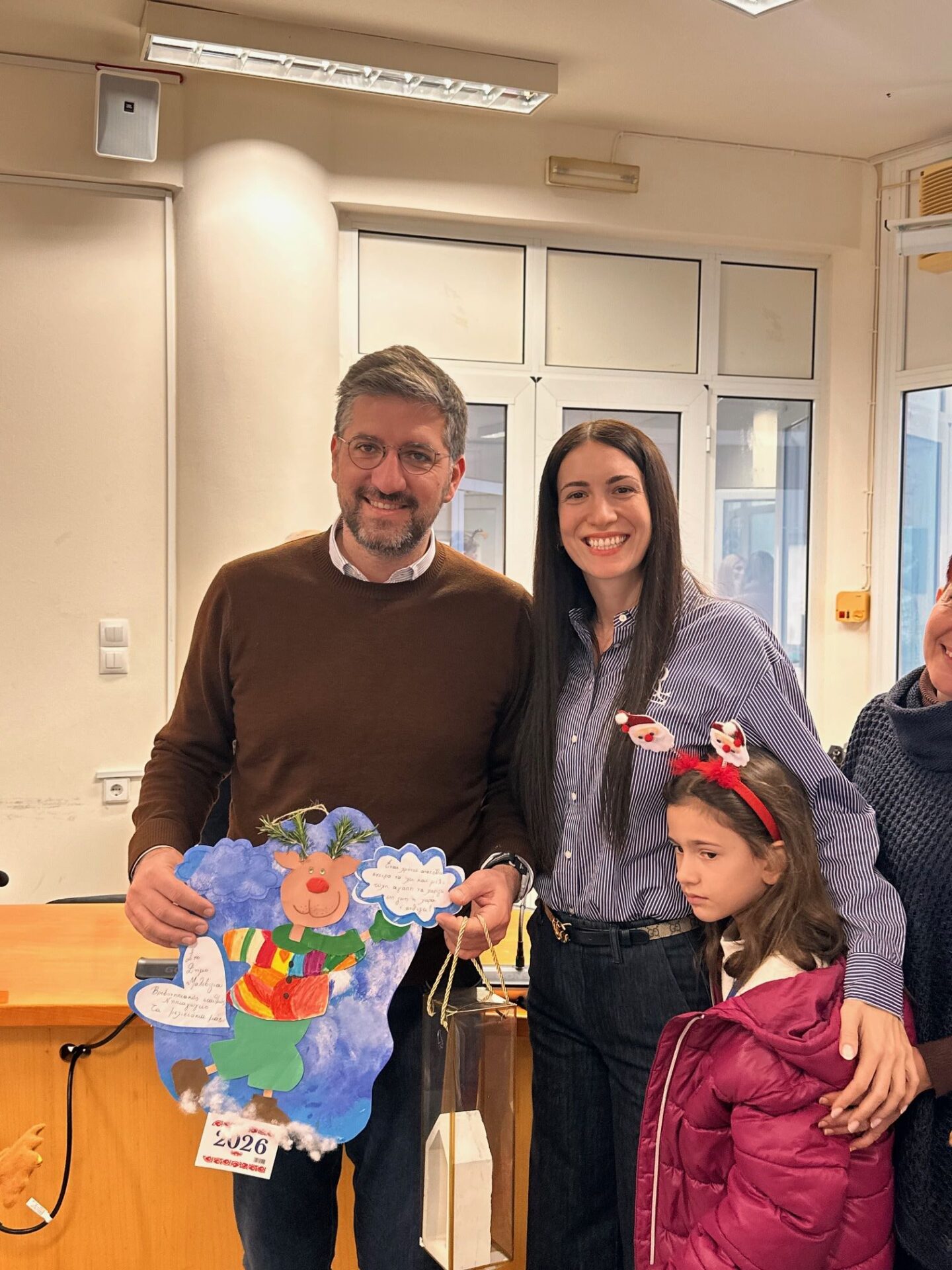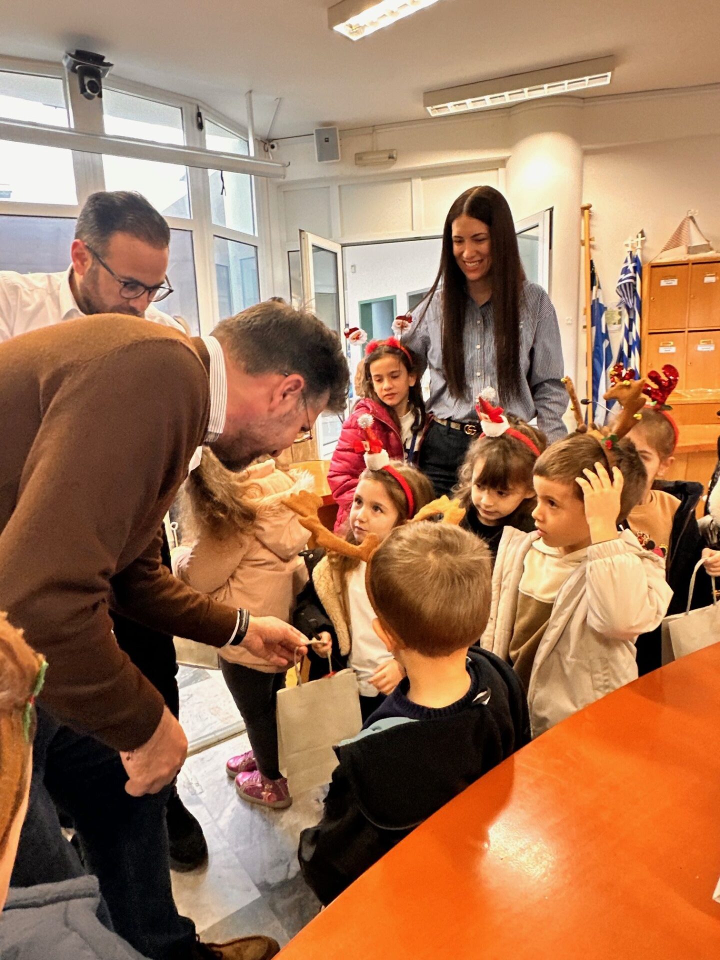 Ο Δήμαρχος, μαζί με τους Αντιδημάρχους Μαρίνα Βογιατζή, Χρύσα Λυρώνη, Βαγγέλη Παρασύρη και Φάνη Κοκκινάκη, τον Πρόεδρο της Κοινότητας Γαζίου Νίκο Πατραμάνη και τη Γενική Γραμματέα του Δήμου Αντιγόνη Καμπάνη, ευχαρίστησαν τα παιδιά για την όμορφη επίσκεψη και αντάλλαξαν ευχές μαζί τους, καθώς και με τους εκπαιδευτικούς, για καλή χρονιά με υγεία, χαρά και αισιοδοξία.
