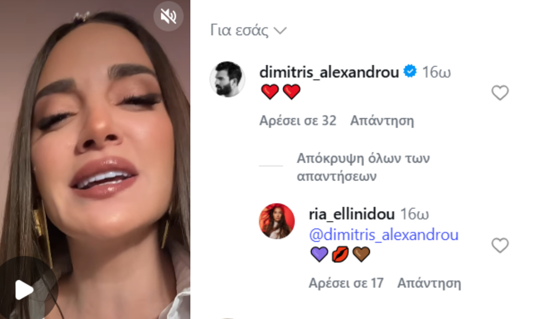 - Ο Δημήτρης Αλεξάνδρου και η Ρία Ελληνίδου ανταλλάσσουν σχόλια στο Instagram, ενισχύοντας τις φήμες για σχέση.