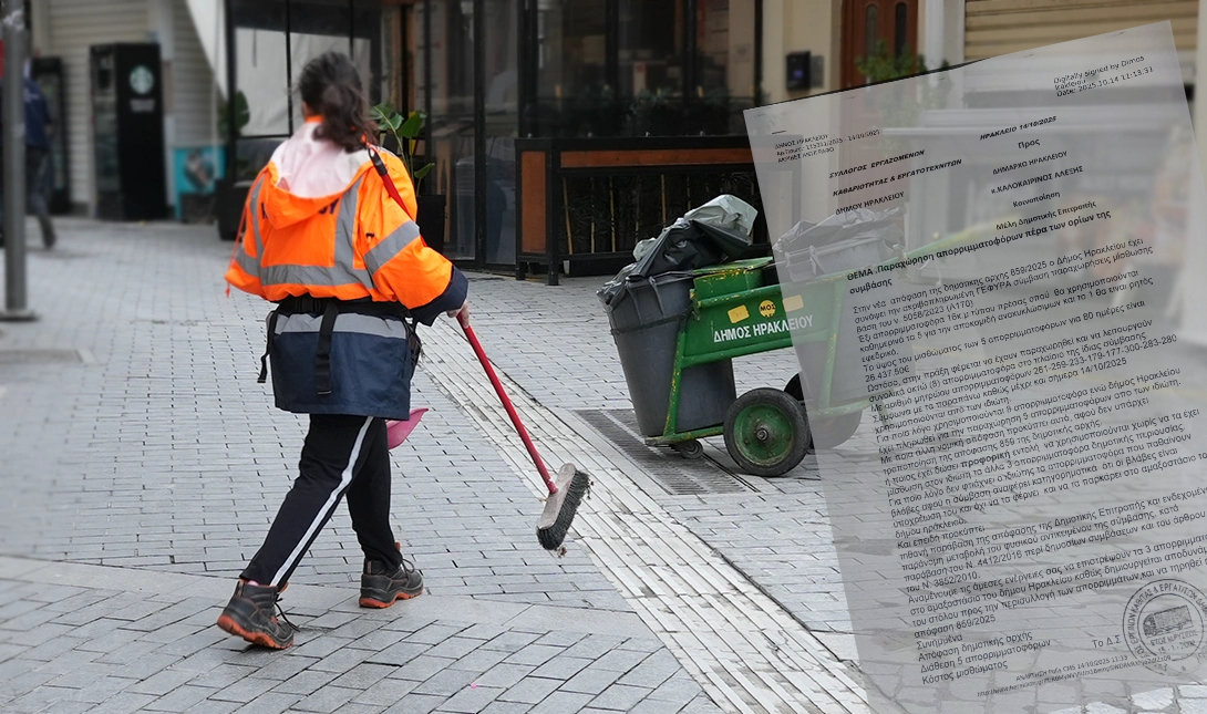 16.10.2025, 17:43 Ηράκλειο: Καταγγελία «βόμβα» από τους εργαζόμενους της καθαριότητας – Ζητούν ξεκάθαρες απαντήσεις από τη δημοτική αρχή