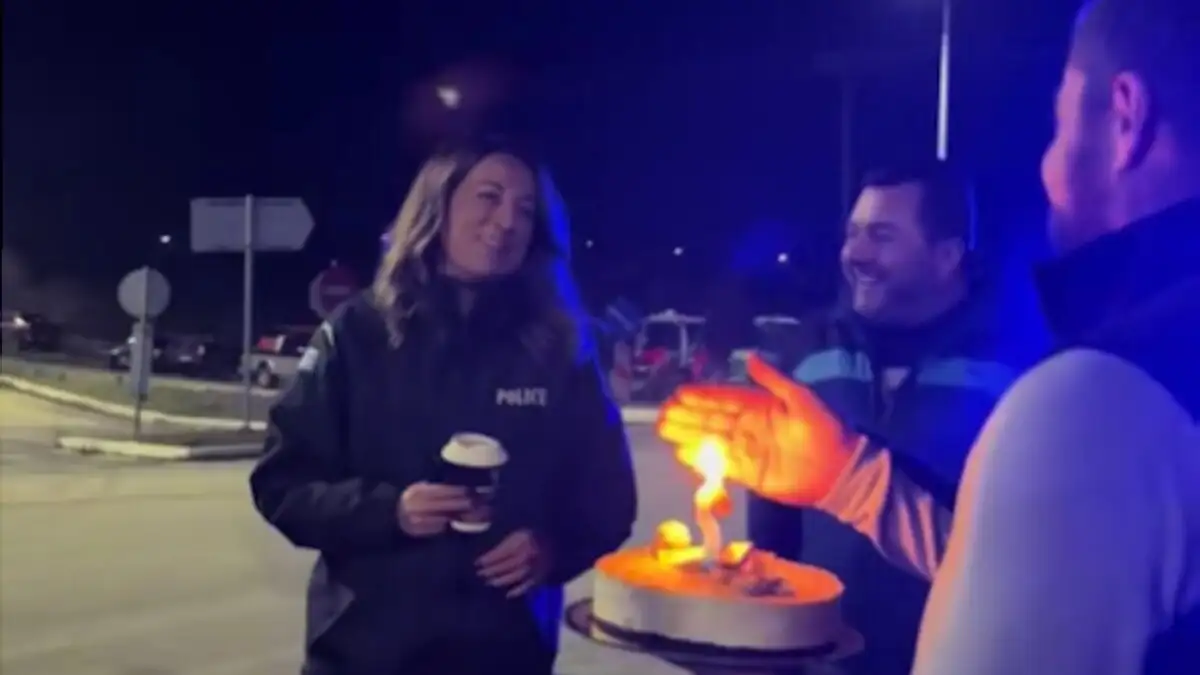 09.12.2025, 14:06 Aγροτικά μπλόκα: Έκπληξη από τους αγρότες με τούρτα σε αστυνομικό! – Δείτε το βίντεοΟι αγρότες δεν δίστασαν να την ευχαριστήσουν που βρίσκεται πάντα κοντά τους