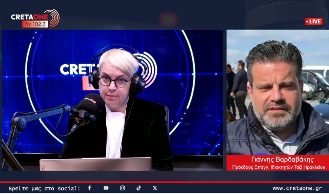 18.02.2026, 13:46 Ηράκλειο: Κλιμάκωση κινητοποιήσεων προαναγγέλλουν οι ιδιοκτήτες ταξί – Τι είπε ο Βαρδαβάκης στο CRETAONE 102,3