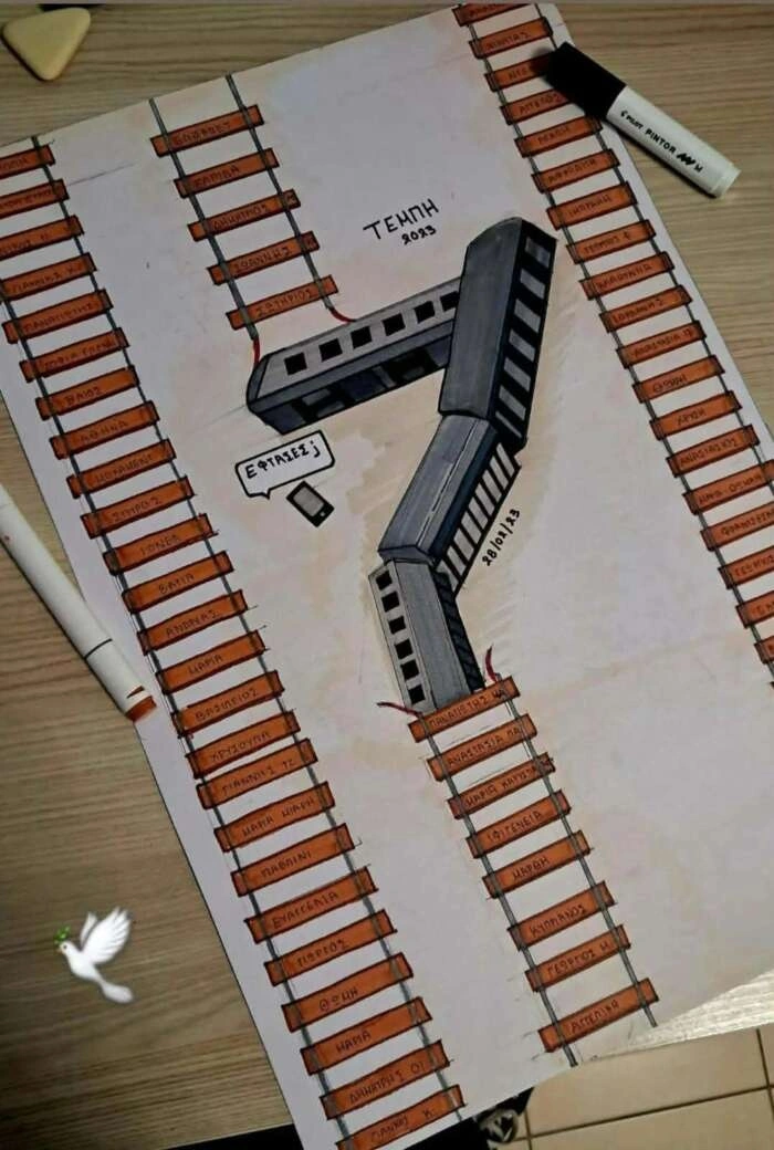 Συγκινεί η ζωγραφιά μαθήτριας για το δυστύχημα στα Τέμπη, τρία χρόνια μετά τη σιδηροδρομική τραγωδία με τους 57 νεκρούς.