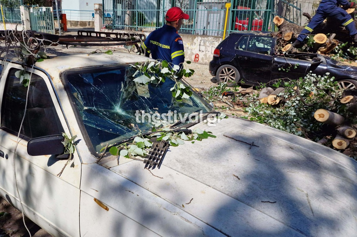 - Το δέντρο έπεσε πάνω σε σταθμευμένα αυτοκίνητα στο νοσοκομείο ΑΧΕΠΑ, προκαλώντας σοβαρές ζημιές.