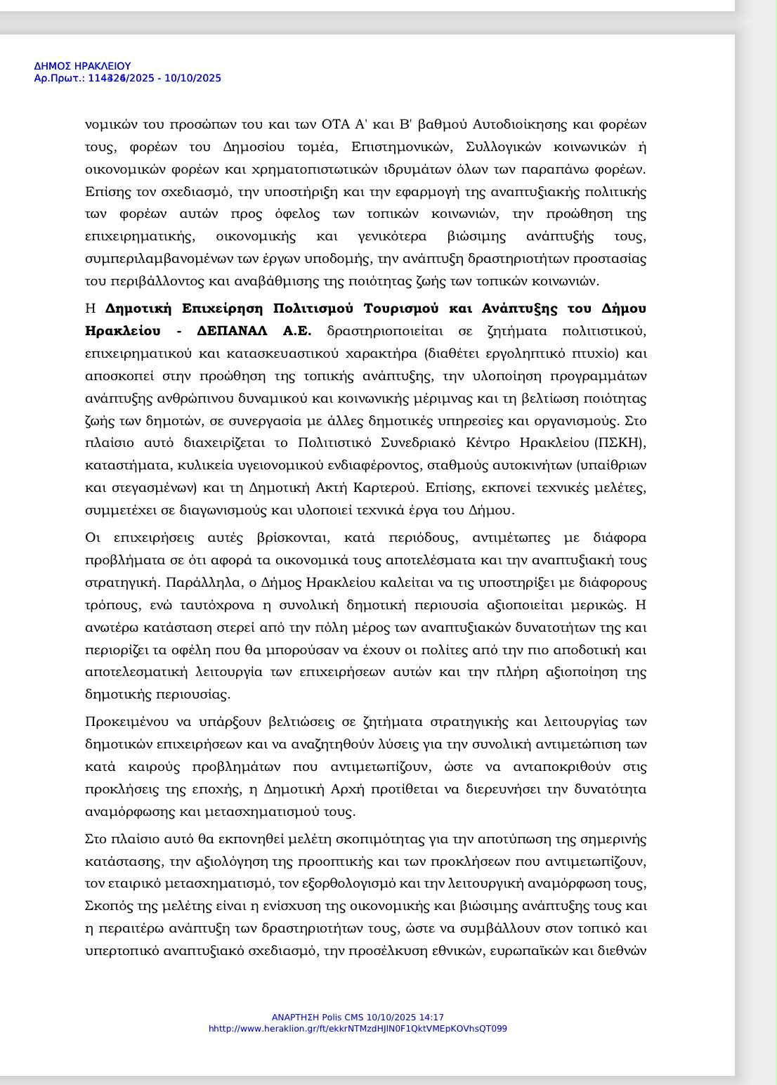 -Αναπτυξιακός Οργανισμός Τοπικής Αυτοδιοίκησης Ηράκλειο Μονοπρόσωπη Α.Ε
