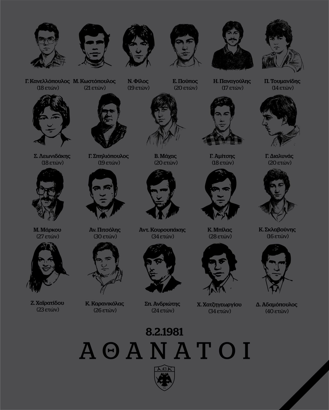 Κάθε χρόνο 8 Φλεβάρη όλη η φίλαθλη Ελλάδα θα τιμά τη Μνήμη των 21 αυτών Νέων παιδιών…».