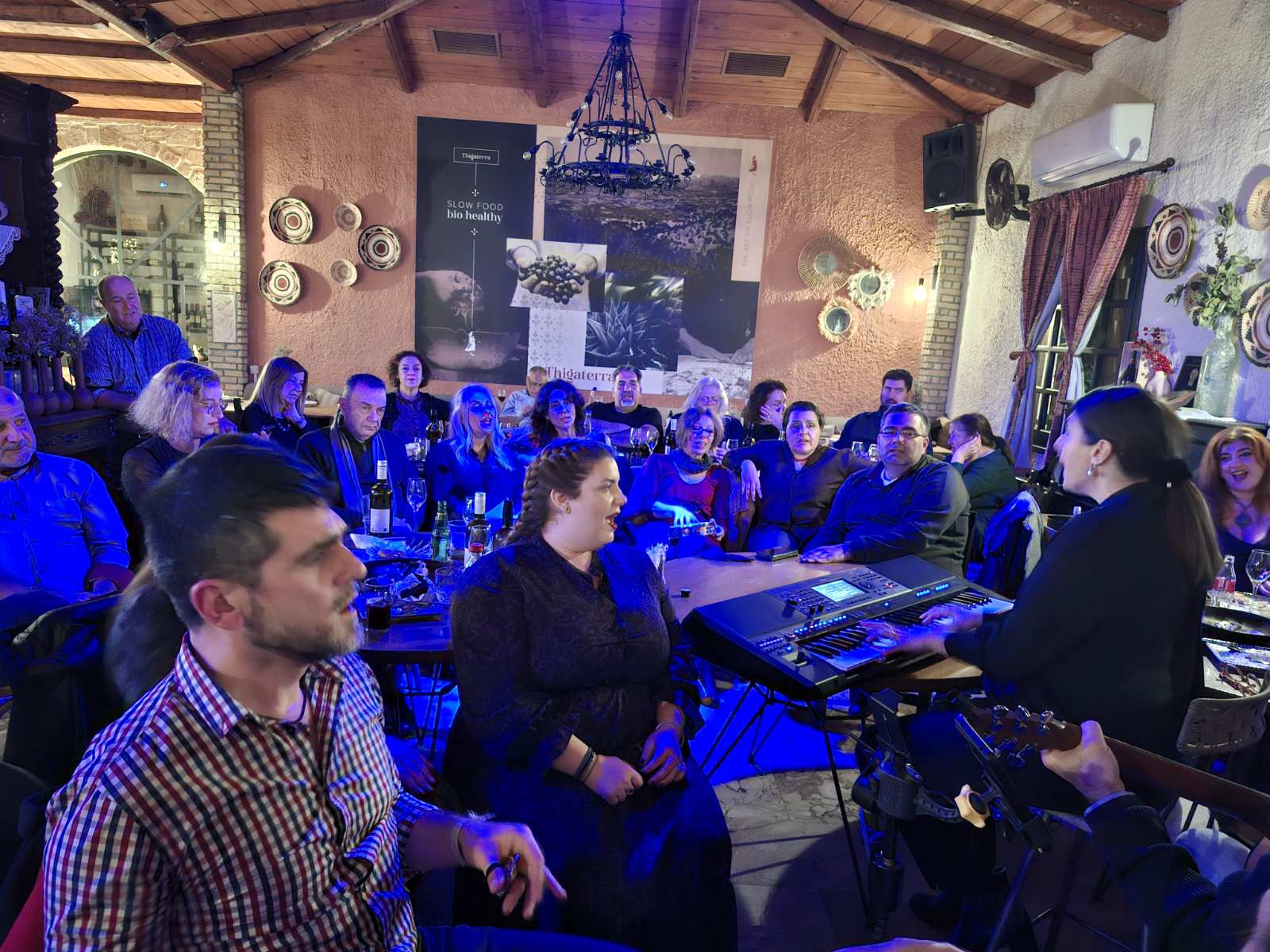 Η βραδιά ξεκίνησε με ζωντανή μουσική με την Ελένη Σελλούντου, ωστόσο σύντομα τη «σκυτάλη» πήραν οι ίδιοι οι χορωδοί, οι οποίοι όχι μόνο χόρεψαν, αλλά με τη συνοδεία μουσικών οργάνων που είχαν φέρει μαζί τους, τραγούδησαν, μέσα από ένα πλούσιο ρεπερτόριο!
