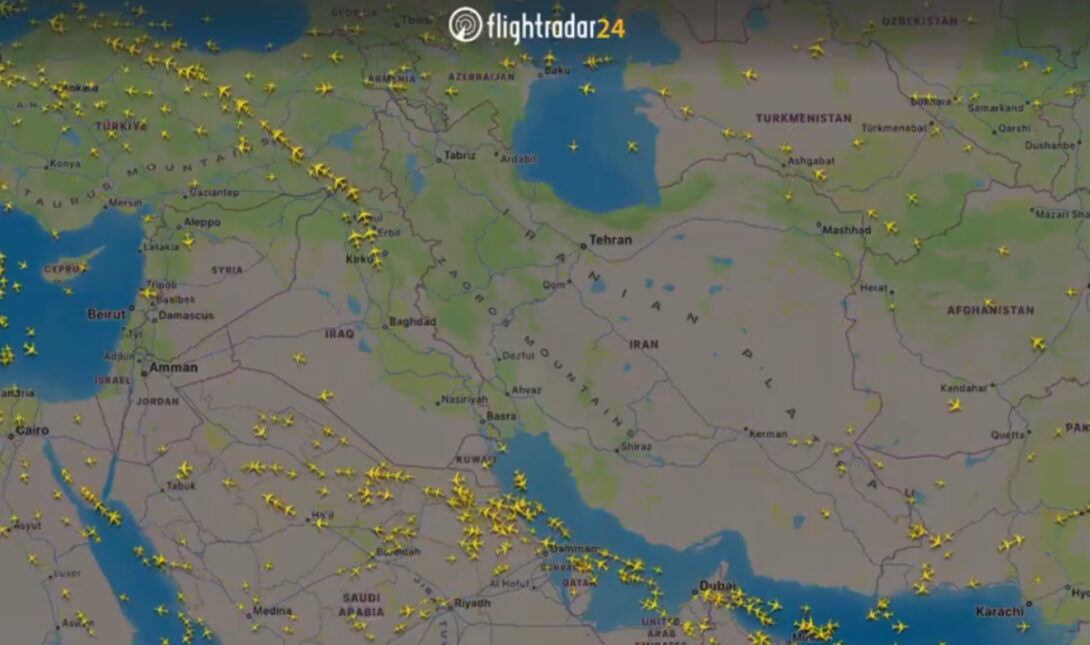Δείτε ένα βίντεο από την ιστοσελίδα Flight Radar 24 στο οποίο αποτυπώνει τις τρελές πορείες των επιβατικών αεροπλάνων για να φύγουν όσο το δυνατόν πιο σύντομα από τον εναέριο χώρο του Ιράν όταν ενημερώθηκαν για την επίθεση από Ισραήλ και ΗΠΑ.