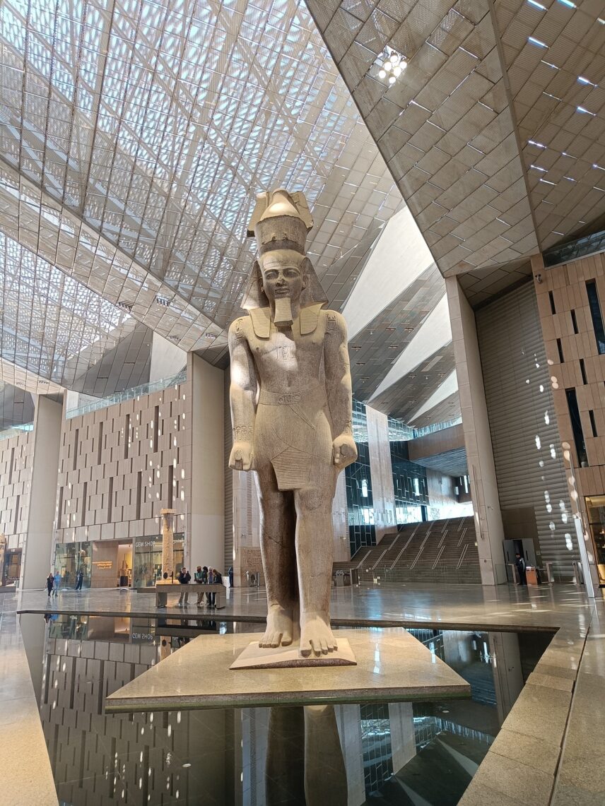 Η πρώτη εντύπωση-Ο Ραμσής και η Μεγάλη Σκάλα. Η είσοδος στο GEM προκαλεί δέος. Στην καρδιά του αιθρίου δεσπόζει το επιβλητικό άγαλμα του Φαραώ Ραμσή Β’, ύψους 11 μέτρων και βάρους 83 τόνων.
