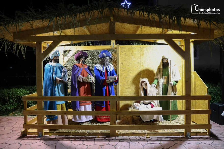 Ένα ξεχωριστό χριστουγεννιάτικο σκηνικό έχει στηθεί στη Χίο, όπου ένα εντυπωσιακό χωριό φτιαγμένο εξ ολοκλήρου από πλεκτά δημιουργεί εικόνες βγαλμένες από παραμύθι και προσελκύει το ενδιαφέρον μικρών και μεγάλων. Στο επίκεντρο δεσπόζει ένα χριστουγεννιάτικο δέντρο ύψους 10 μέτρων, το οποίο έχει κατασκευαστεί από 3.500 πλεκτά τετράγωνα μοτίβα, ενώ τα συνολικά εκθέματα του χωριού ξεπερνούν τα 30.