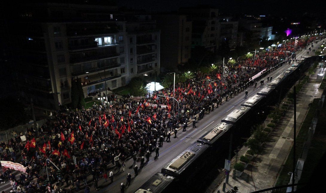 Με τον Σύλλογο Φυλακισθεντων κι Εξορισθεντων Αντιστασιακών, τους συλλόγους φοιτητών του ΕΜΠ και του ΕΚΠΑ στην κεφαλή η κυρία πορεία των οργανώσεων της νεολαίας, των κομμάτων και συλλογικοτήτων ξεκίνησε λίγο μετά τις 17:00 από την πλατεία Κλαυθμώνος. Το μπλοκ του ΚΚΕ, που είχε σημείο προσυγκέντρωσης στην Ομόνοια, ξεκίνησε σε απόσταση απ’ την κεφαλή της πορείας.